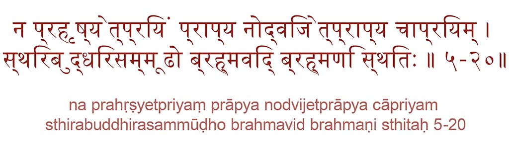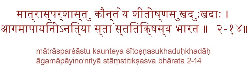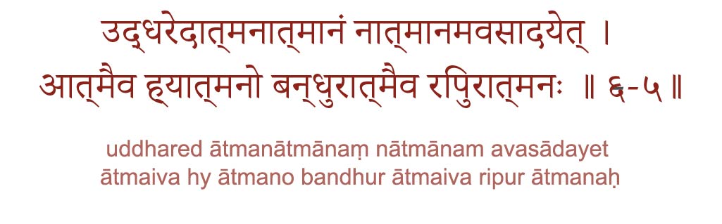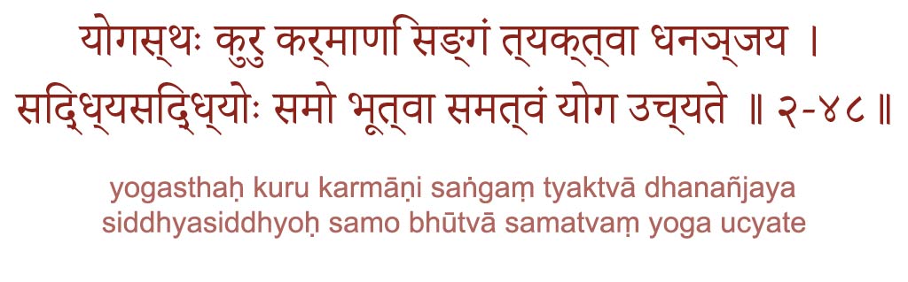So beeinflusst Krishna die Gedanken von Arjuna und sagt ihm, dass alles, was er braucht, er selbst ist. Gleichmut des Selbst ist die Befreiung von allen Begrenzungen; und was bleibt ist das was „IST“ und immer schon war, denn „DAS, WAS DU BIST“ ist grenzenlos.
