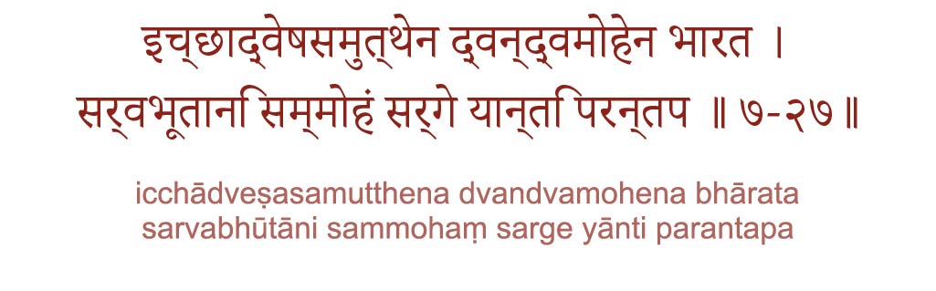 die durch Verlangen und Ablehnen hervorgerufen wird, oh Bharata,
